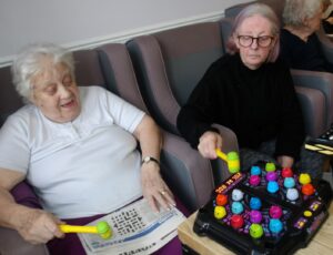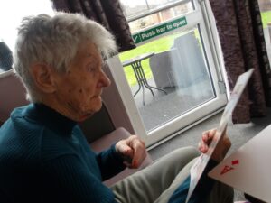 This morning a few residents had a lovely gossip whilst doing some art and crafts and had fun popping bubbles and singing along with Paul Barrie this afternoon.