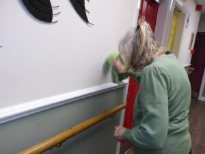 Residents enjoyed a spot of dusting and joining in with a quiz this morning followed by darts and basketball this afternoon.