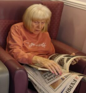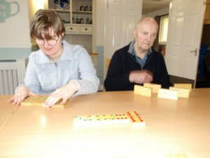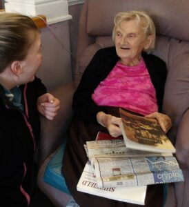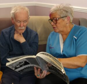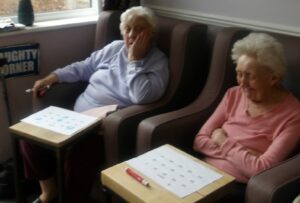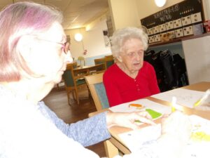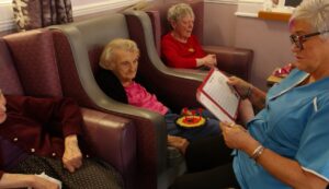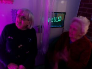 Residents enjoyed reminiscing whilst looking through old photograph books of Sheffield and surrounding areas. They played Play your cards right and Ann and Ann loved a visit to the sensory pod.