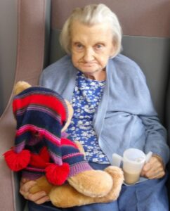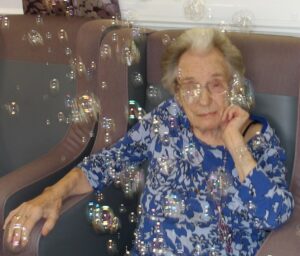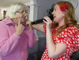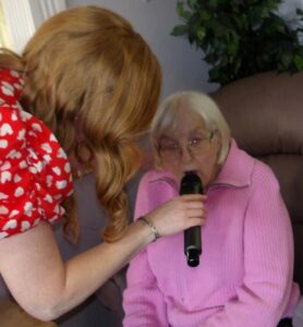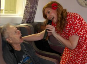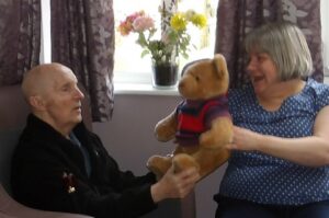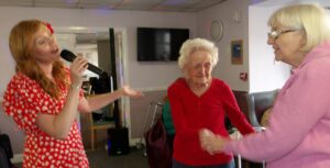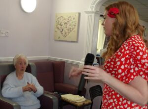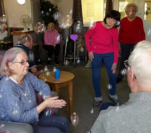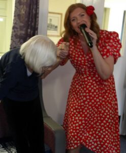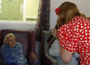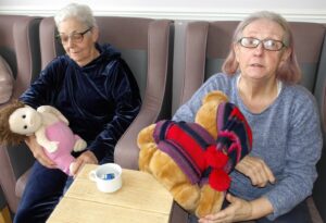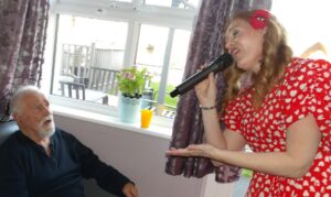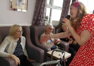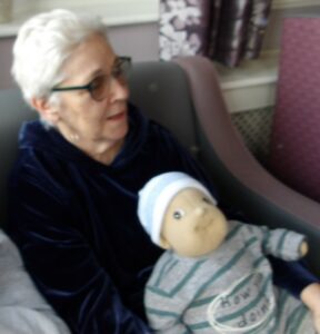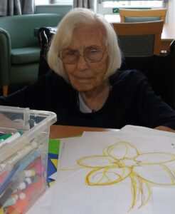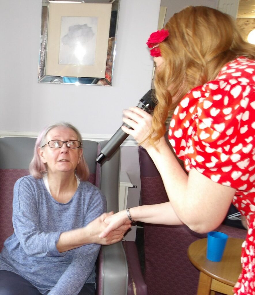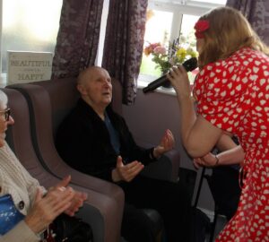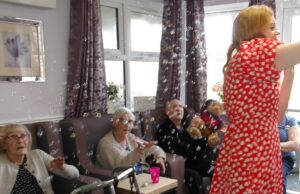 This morning residents relaxed whilst hugging teddy bears and empathy dolls and did some colouring in. Keeley May came to sing this afternoon and everyone loved the props and bubbles she brought with her.